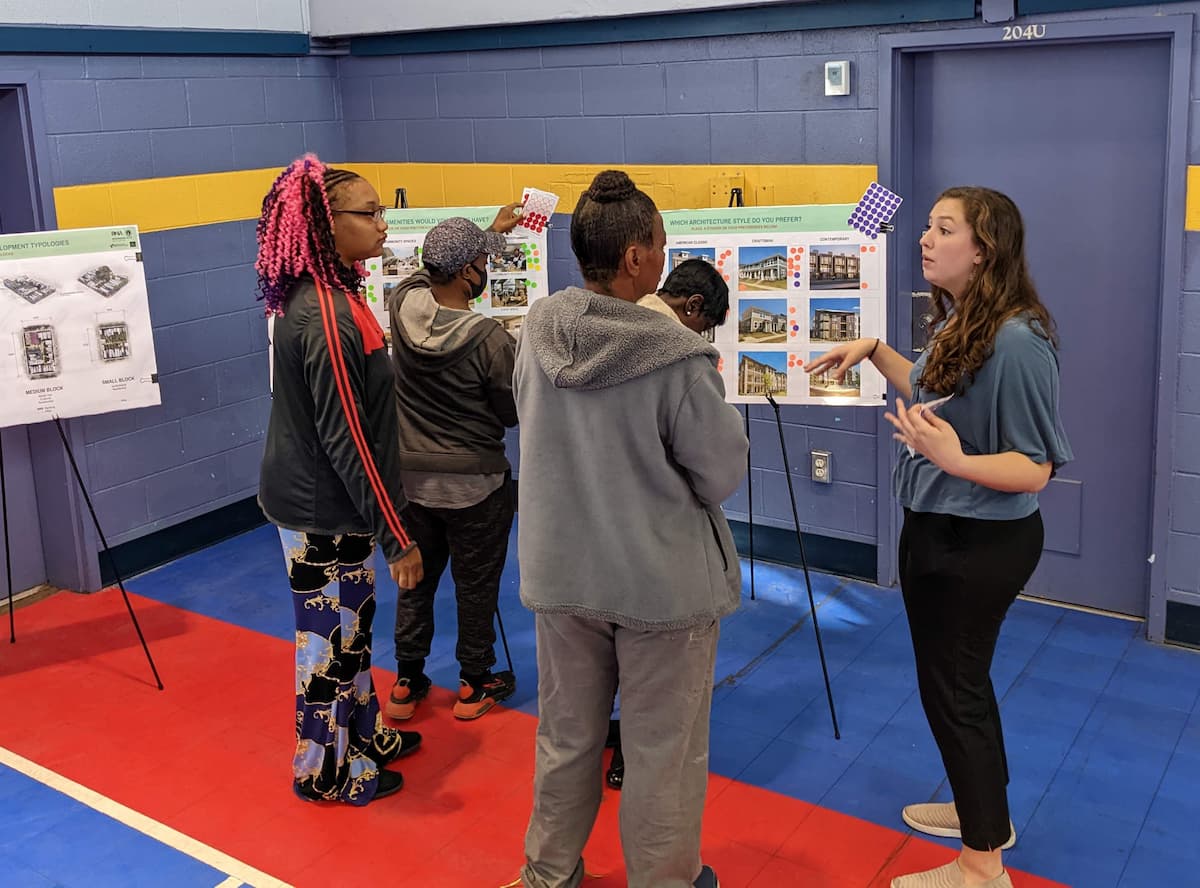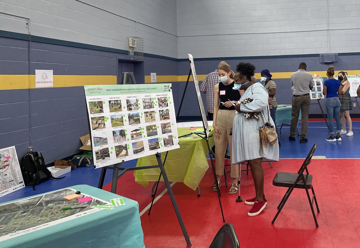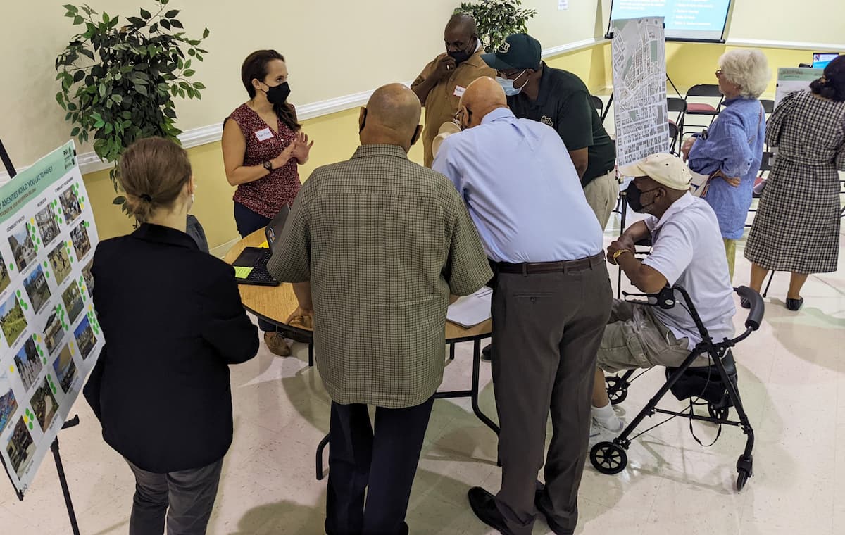 Interactive meetings where community members work with the planning team to generate ideas, define goals and a vision for the neighborhood, discuss design alternatives, and provide feedback as the plan develops.