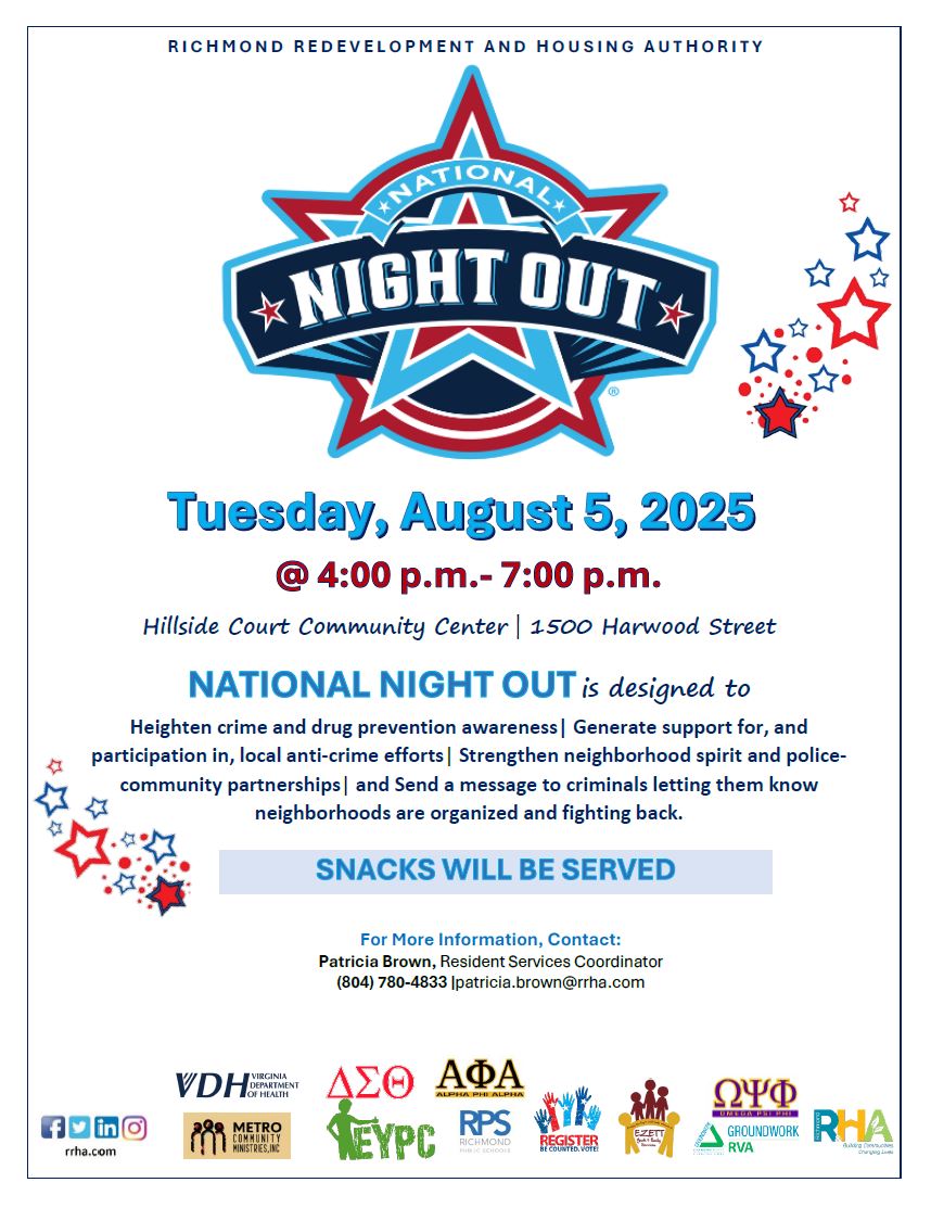 Home Calendar Community Event National Night Out- Hillside National Night Out- Hillside Date Tuesday, Aug 05, 2025 Expired! Time 4:00 pm - 7:00 pm Category Community Event Share this event